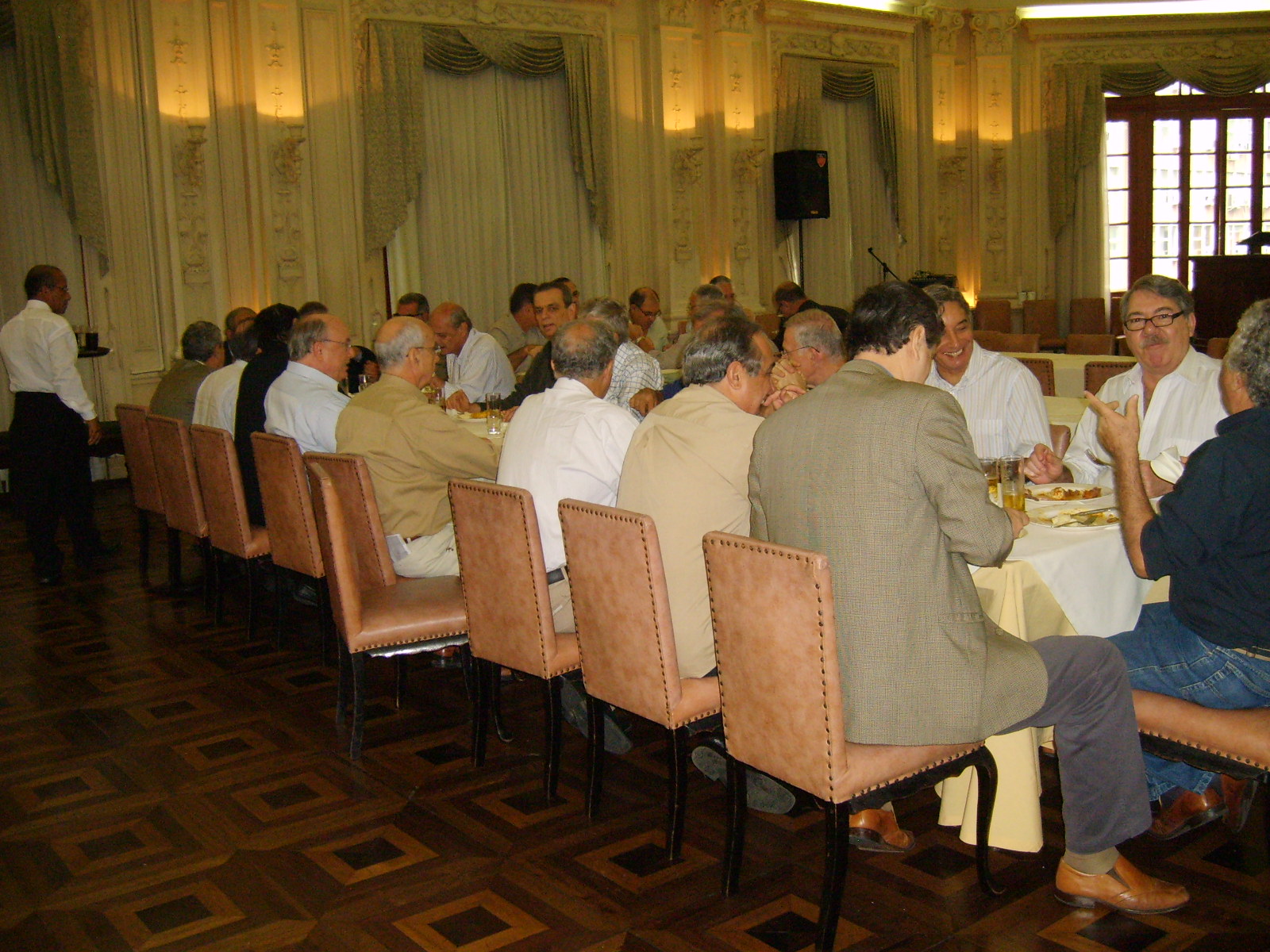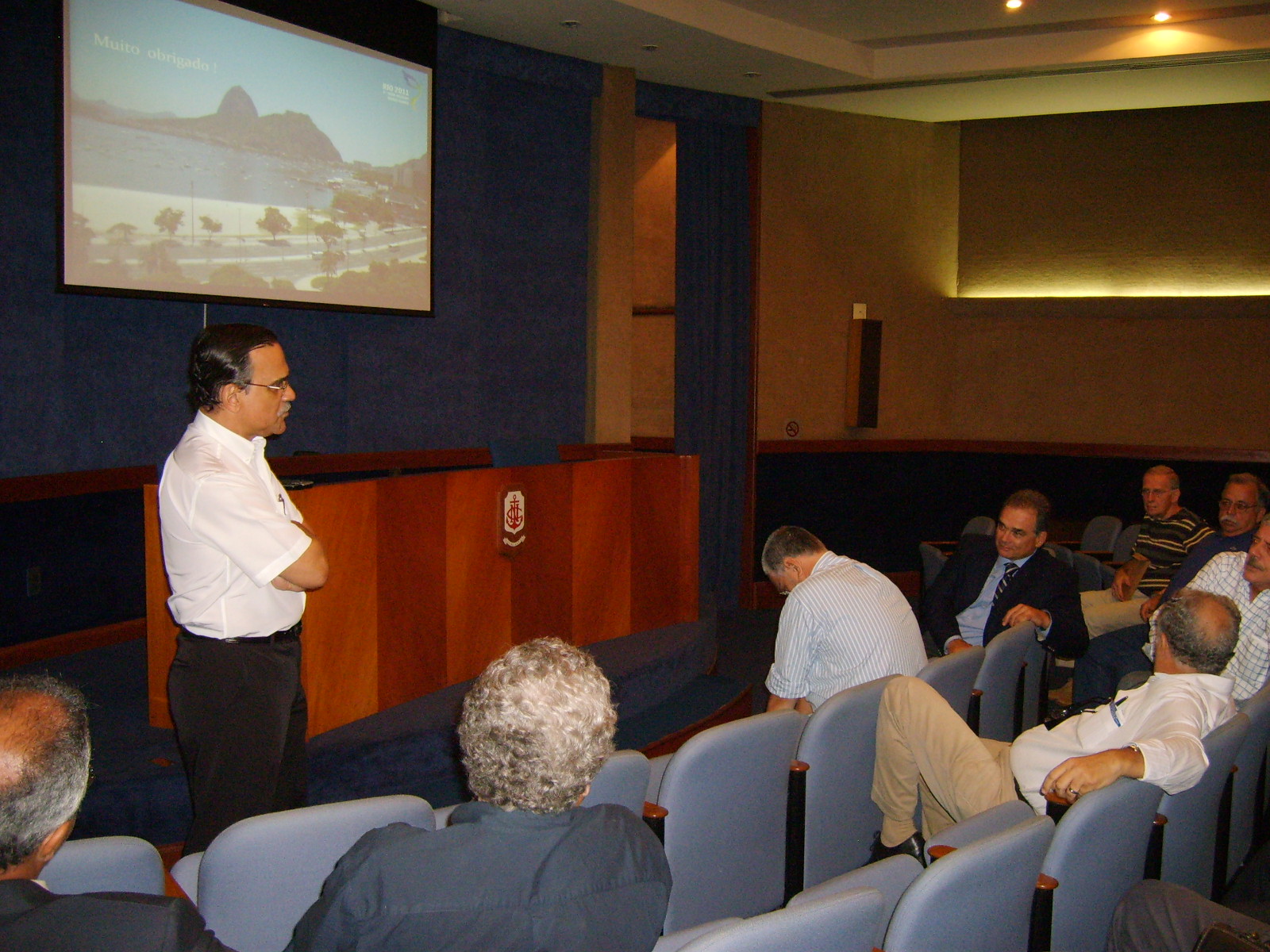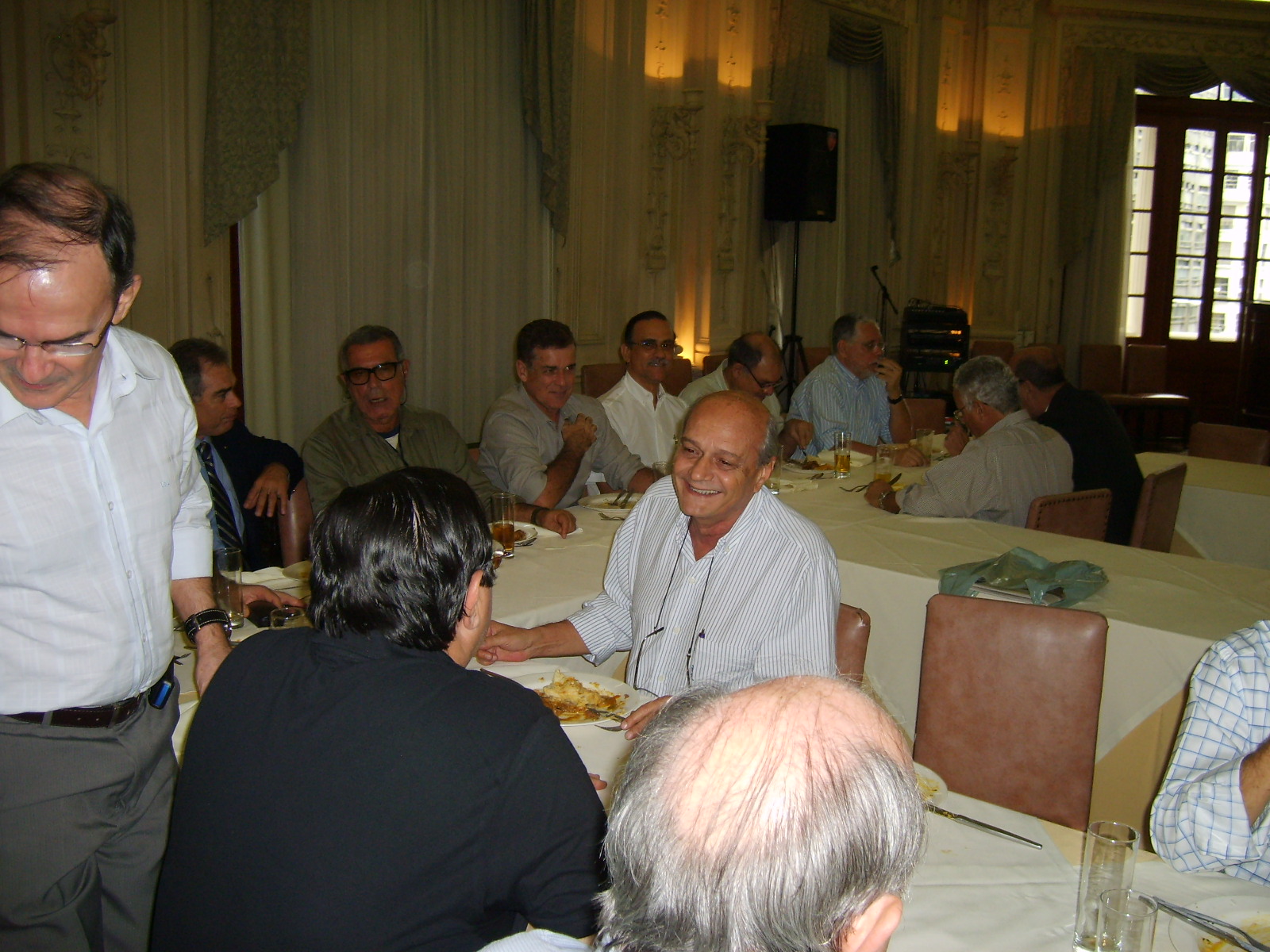 Amigos e companheiros Terça passada, 03, antes de nosso já tradicional almoço das primeiras terças de cada mês, fomos brindados pelo Delfino com uma palestra sobre as OLIMPÍADAS MILITARES 2011? a serem realizados aqui no Brasil. Foi uma apresentação muito boa, bem preparada e, principalmente, elucidativa. Ficamos boquiabertos com a grandeza do espetáculo que está por vir. Trata-se do terceiro maior evento esportivo do mundo que está sendo, desde já, preparado com muito profissionalismo por parte de todos aqueles envolvidos com os jogos. Pena que o tempo alocado não tenha sido o suficiente para permitir ao Delfino presentar-nos tudo o que tinha preparado. Mesmo assim recebemos um bom número de informações. A grande maioria dos presentes não tinha conhecimento do que nos foi detalhadamente apresentado, inclusive o pessoal que ainda labuta na MB. É triste ver que a divulgação, tanto na mídia como para o público interno, ainda não tenha acontecido como merece situações com essa. Segundo o Delfino, isso passará a ser divulgado a partir do 7 de setembro próximo. Vamos aguardar. Delfino, receba da diretoria da ATRM, em nome dos associados, nossos respeitos e agradecimentos por nos proporcionar momento que agregaram conhecimentos e satisfação de poder deparar, mais uma vez, que o profissionalismo militar continua cada vez melhor. ABREU LIMA WASHINGTON MOTTA PS: Fica desde já lançado um desafio para os demais membros da ATRM (sem crise). O evento almoço das primeiras terças, precedido de palestra, tem se mostrado um sucesso. É cada vez maior o número de participantes. Fomos brindados com palestras sobre submarino nuclear, glaucoma e olimpíadas militares, ministradas por representantes do corpo da armada, de civil médico e do corpo de fuzileiros . Está faltando a participação de outros importantes representantes da nossa associação: os intendentes, engenheiros navais e civis de outras áreas de atividade........ aguardamos inscrições/sugestões para as possíveis próximas palestras.CONFIRA ALGUNS MOMENTOS DO EVENTO